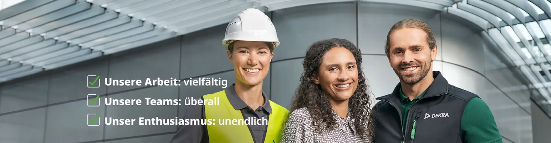 Bei DEKRA stehen Zukunftsthemen in allen Arbeitsbereichen im Mittelpunkt: von der Fahrzeugprüfung bis zur Cybersicherheit, von der Produktprüfung bis zu sauberen Energien oder vom automatisierten Fahren bis zur künstlichen Intelligenz. Wir stellen uns frühzeitig auf neue technische Entwicklungen ein und sorgen branchenübergreifend in 60 Ländern mit rund 48.000 Mitarbeitenden für Sicherheit.